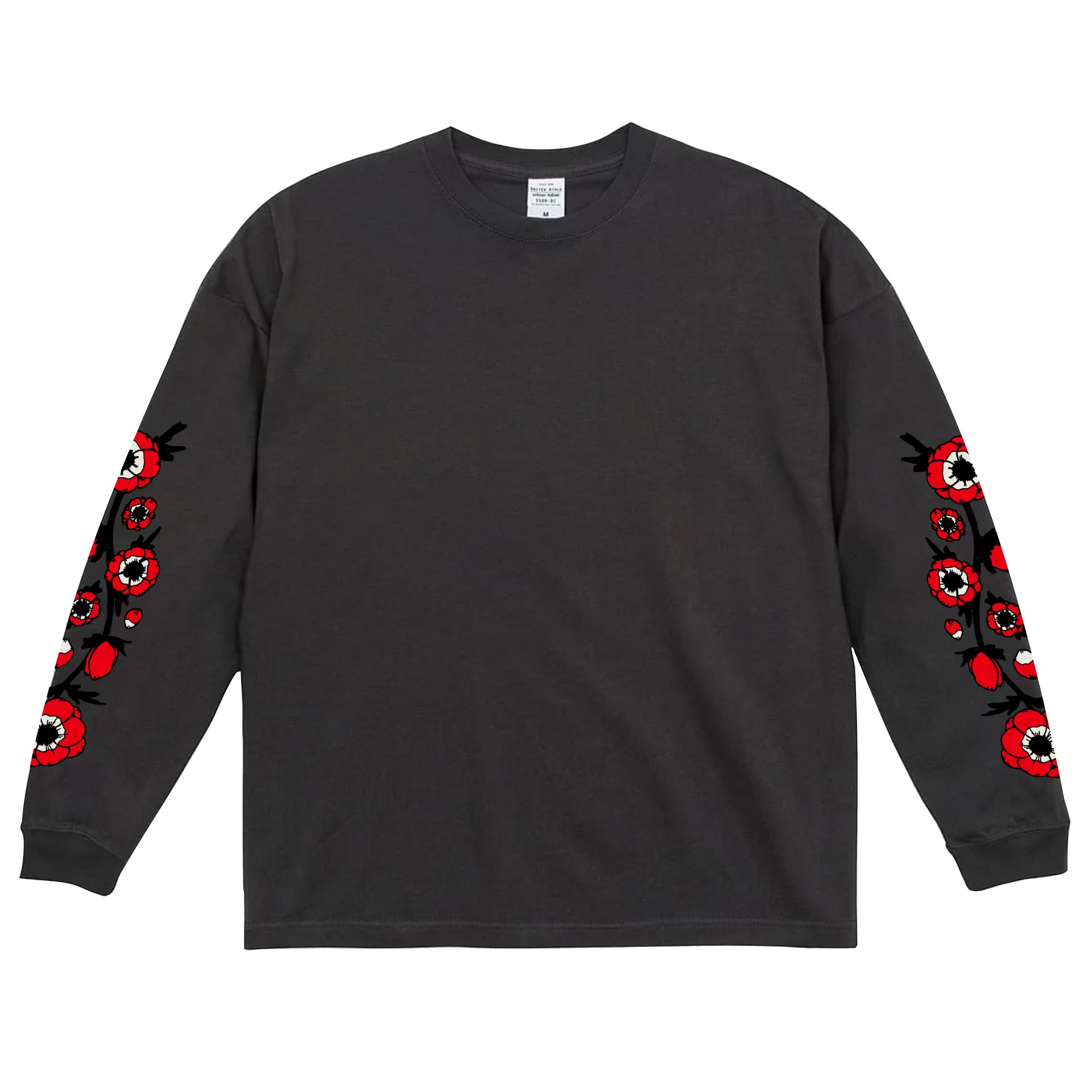両腕にアネモネのイラストをシルクスクリーンプリントで仕上げたロングスリーブTシャツ。